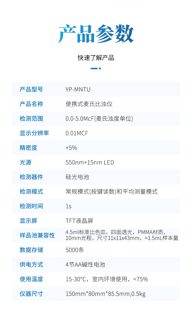 檢測范圍 | 0.0-5.0McF(麥氏濁度單位) |
