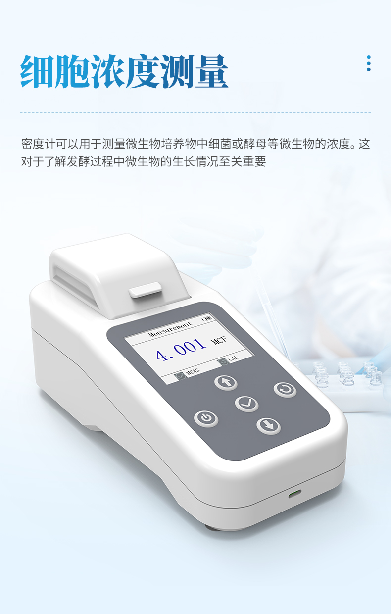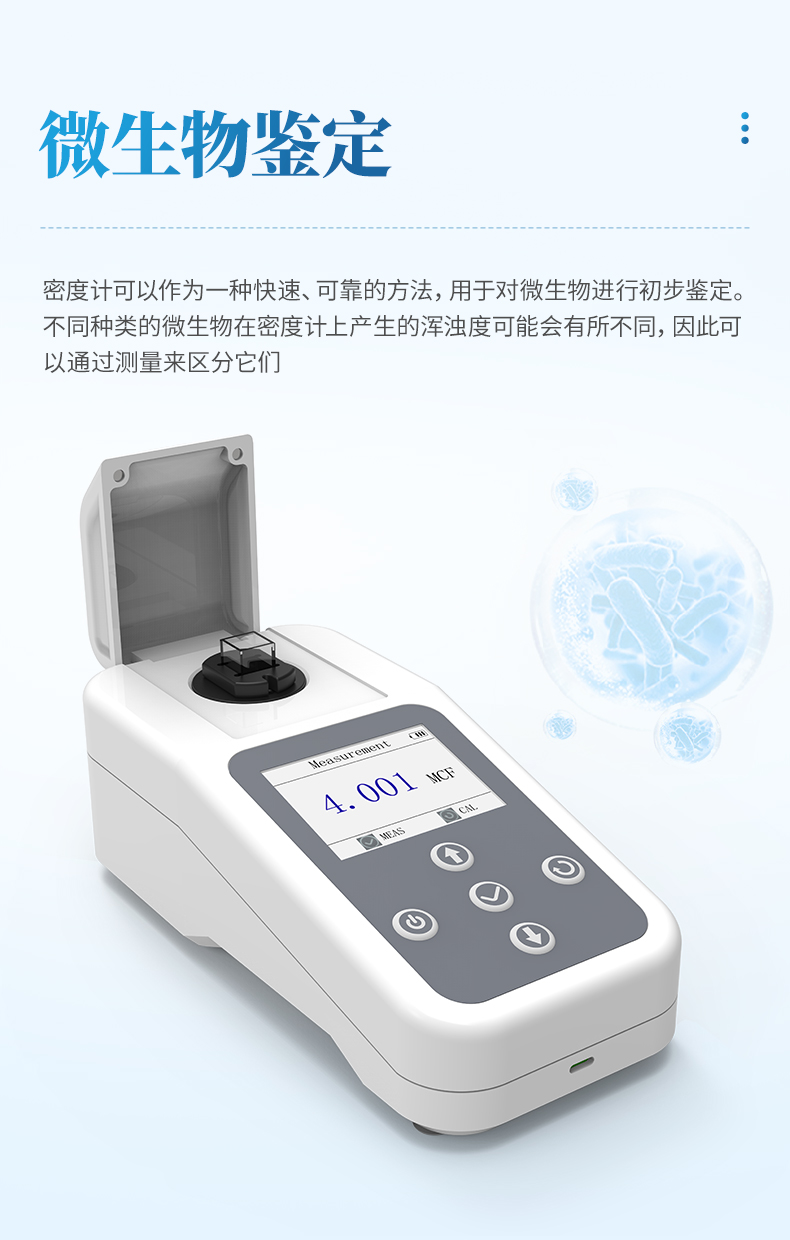 微生物鑒定:密度計可以作為一種快速、可靠的方法,用于對微生物進行初步鑒定。不同種類的微生物在密度計上產(chǎn)生的渾濁度可能會有所不同,因此可以通過測量來區(qū)分它們。