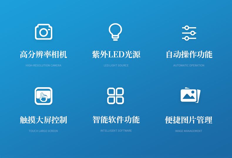 采用 13.3 寸觸摸屏控制,內(nèi)存 16G,256G 固態(tài)硬盤,使儀器具有更強(qiáng)大圖像計(jì)算及 處理能力,配合圖像采集軟件操作簡(jiǎn)捷直觀,軟件具有自動(dòng)采集信號(hào),并進(jìn)行自己處理合 成功能;曝光模式分為自動(dòng)曝光、手動(dòng)曝光、以及自動(dòng)定義曝光功能。配合圖像分析軟件 可對(duì)圖像信號(hào)進(jìn)行定性定量分析。