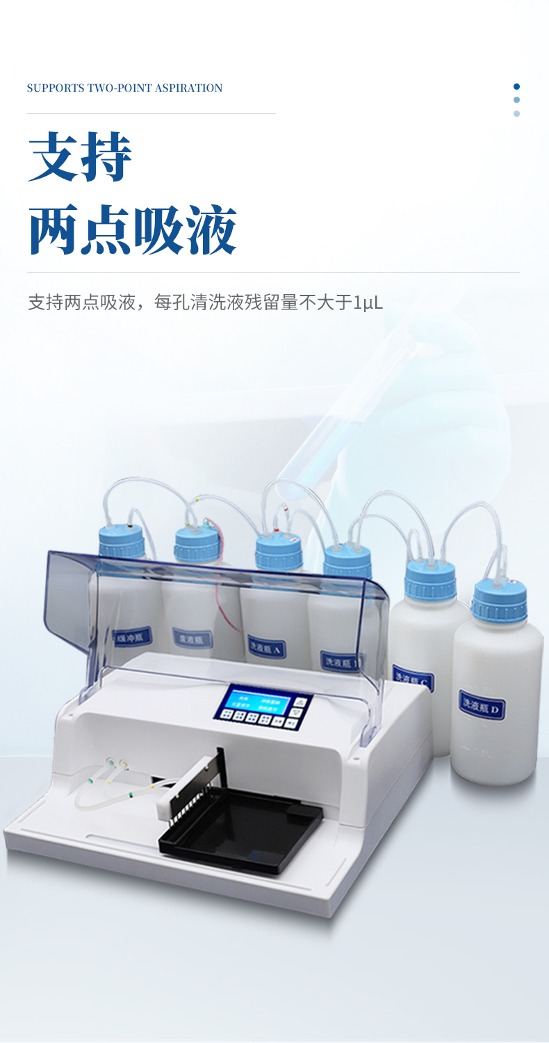 支持兩點(diǎn)吸液,每孔清洗液殘留量不大于1μL