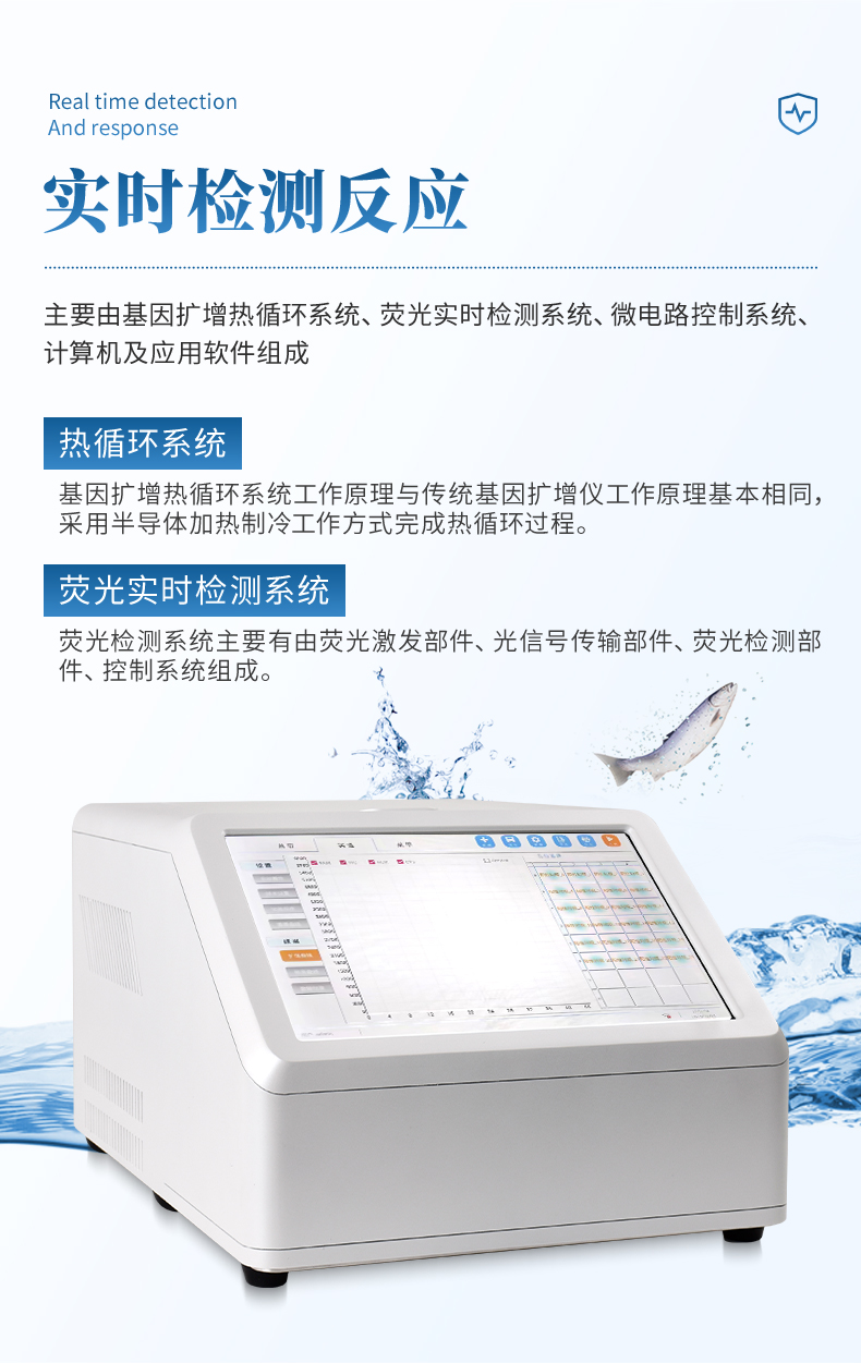我公司研發(fā)的魚蝦病毒檢測儀采用實時定量聚合酶鏈式反應(qPCR)技術,是一種常用的分子生物學技術,用于檢測水產(chǎn)養(yǎng)殖中的病毒。PCR檢測儀可以擴增和檢測特定病毒的核酸序列,從而確定是否感染了特定的魚類或蝦類病毒。