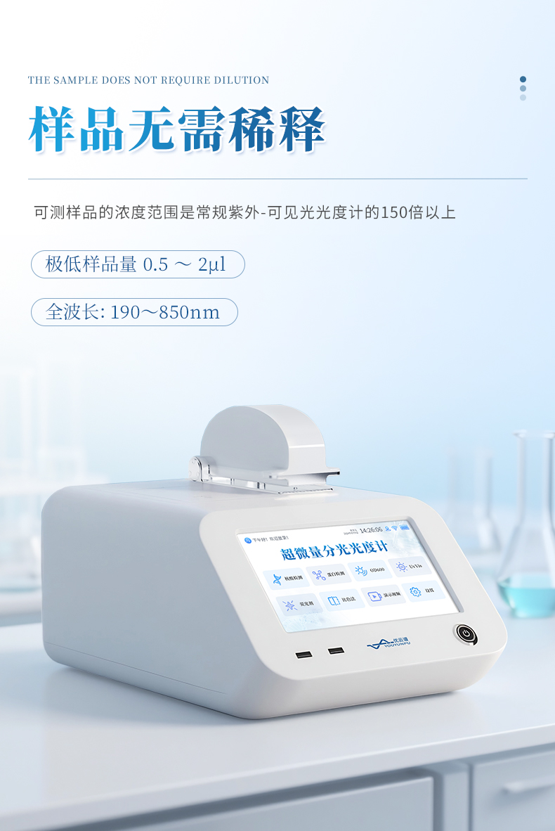 超微量分光光度計(jì)廣泛應(yīng)用于生命科學(xué)研究、生物制藥、醫(yī)學(xué)診斷及食品安全等多種領(lǐng)域。