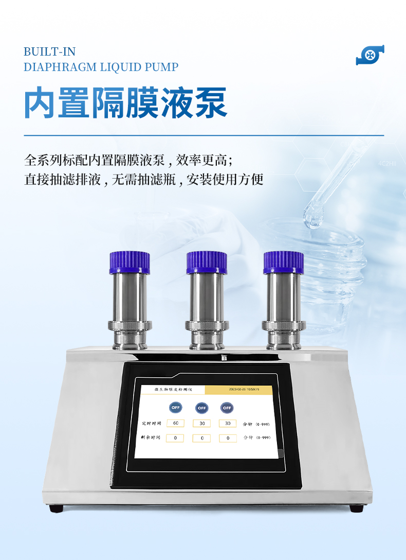 抽濾方式 | 內(nèi)置隔膜液泵負(fù)壓抽濾,無(wú)需抽氣瓶 |